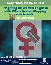 In April 2022, we hosted an online screening of "In the Name of Your Daughter" and had a panel discussion with the director Giselle Portenier and our president Susan McLucas afterwards. We had people from all over the world, a few who were working on implementing new anti-FGM laws in their countries. (view poster)