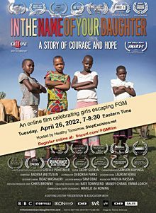 In April 2022, we hosted an online screening of "In the Name of Your Daughter" and had a panel discussion with the director Giselle Portenier and our president Susan McLucas afterwards. We had people from all over the world, a few who were working on implementing new anti-FGM laws in their countries. (view poster)